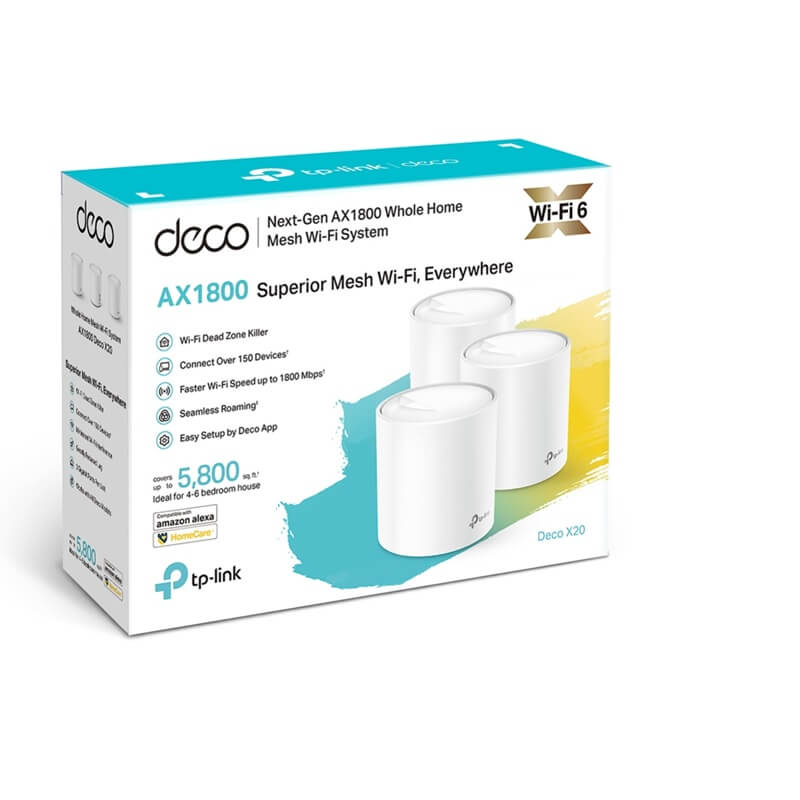 - TPLink Deco X20 AX1800 WiFi 6 Mesh System, 3Pack