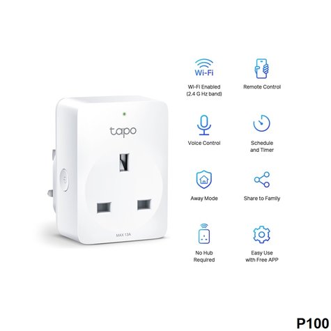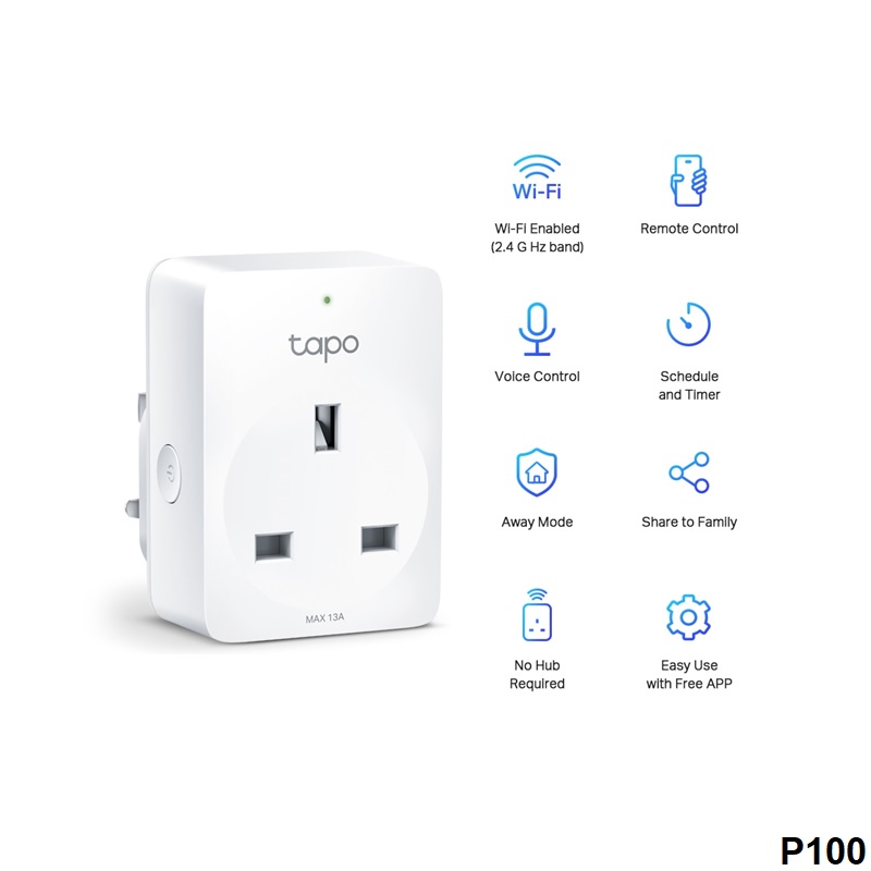 - TPLINK Tapo P100 Mini Smart WiFi Socket Plug 2.4GHz, Remote Control