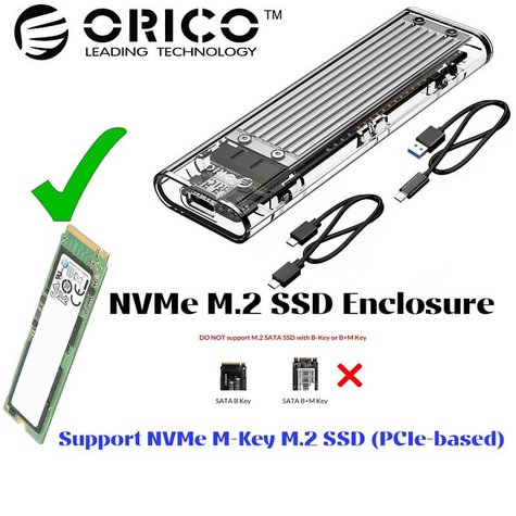ORICO Transparent USB 3.1 Gen2 Type C NVMe M.2 Hard Drive Enclosure