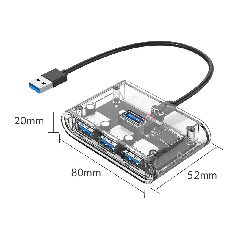 - أوريكو LV1U3 4 منافذ USB3.0 محور شفاف