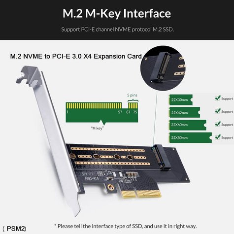 - Orico PSM2 M.2 SSD NVMe to PCIe Expansion Card M-key Interface, Single Slot