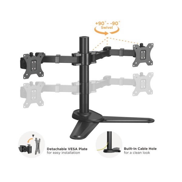 ● ضبط الارتفاع بحرية: للحصول على وضع هندسي مثالي ● ذراع (أذرع) دوارة: تقدم (عروض) أقصى قدر من المرونة في الرؤية (تجعل كل مقعد أفضل مقعد) ● تصميم لوحة VESA القابل للفصل: يتيح سهولة التركيب ● تصميم قابل للإمالة مجانًا: يجعل التعديل سهلًا للأمام أو للخلف للحصول على رؤية أفضل وتقليل الوهج ● لوحة VESA دوارة بزاوية 360 درجة: لتجربة مشاهدة أكثر ● إدارة الكابلات: تحافظ على كل شيء منظمًا