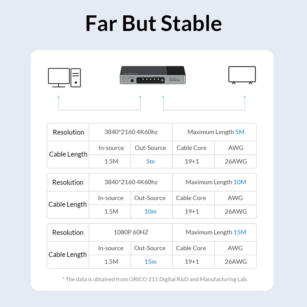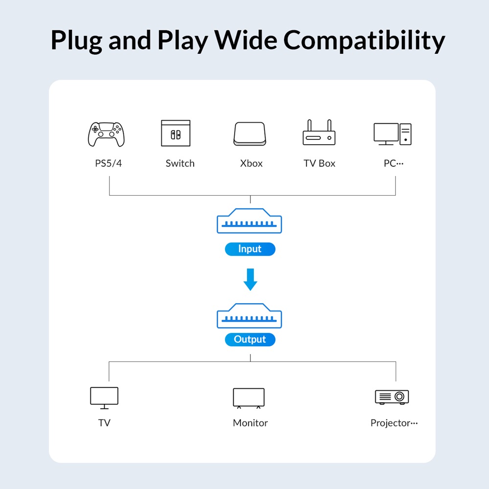 4K @ 60Hz دخل HDMI2.0 - 4 إخراج HDMI - 1 HDMI Micro USB x1 (مصدر طاقة)