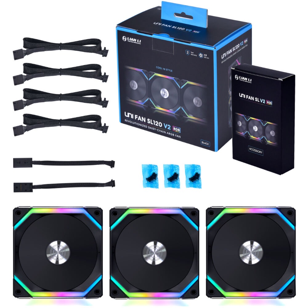 - Lian Li UNI Fan SL120 V2 RGB أسود ، 3 عبوات