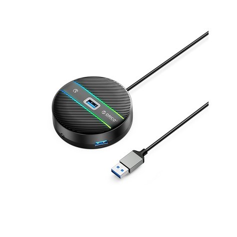 - ORICO YSR4 RGB 4-Port Hub USB 3.0 مع منفذ صوت / ميكروفون ، أسود - 1.8 متر