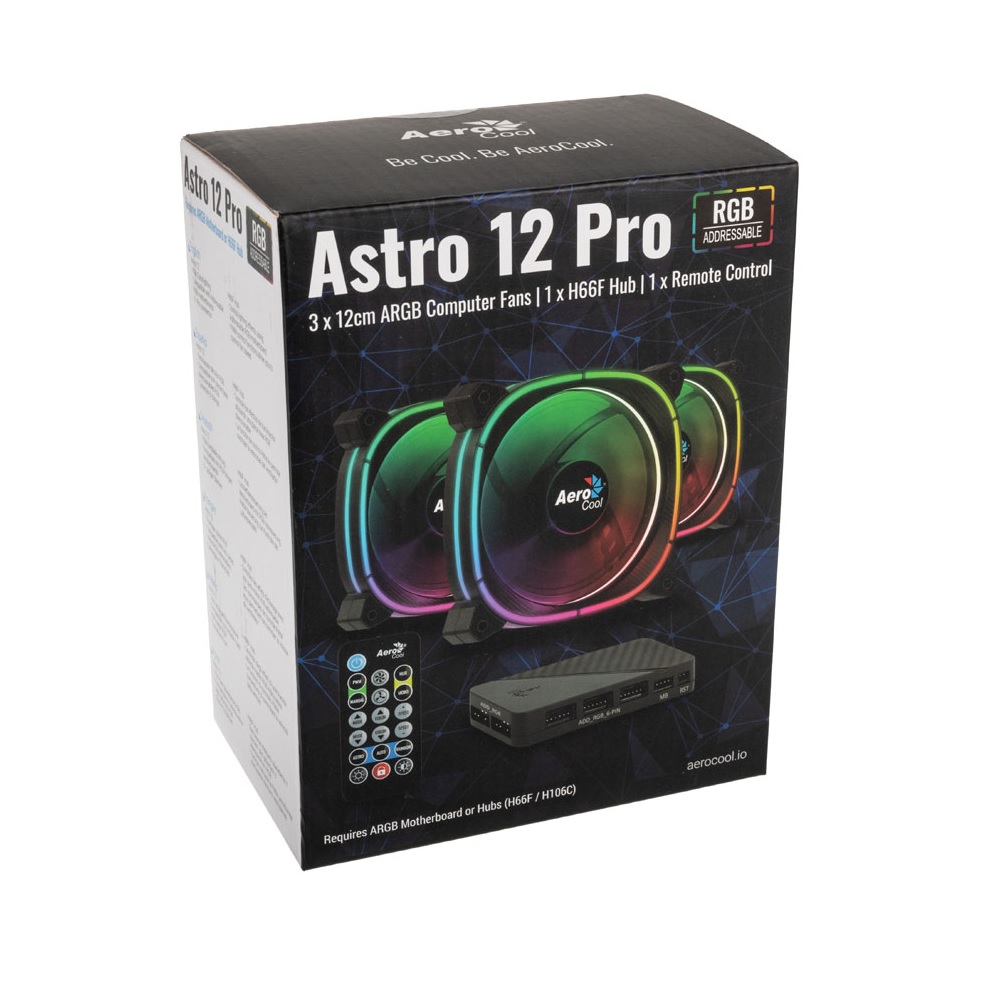 - حزمة مراوح ثلاثية Aerocool Astro 12 Pro RGB LED مع وحدة تحكم – 120 مم