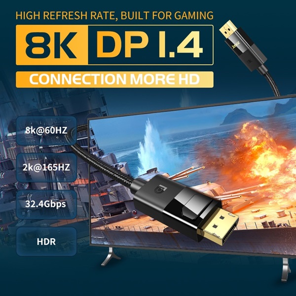 - كابل Jasoz DisplayPort DP1.4 8K HDR بسرعة 32.4 جيجابت في الثانية، 5 متر