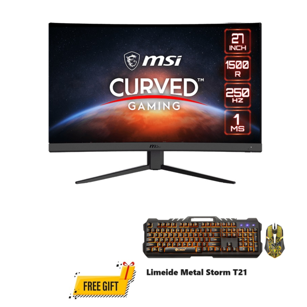 شاشة ألعاب MSI مقاس 27 بوصة G27C4X منحنية 250 هرتز 1 مللي ثانية FHD VA + مجموعة لوحة مفاتيح وماوس للألعاب Limeide Metal Storm T21 + (هدية مجانية)