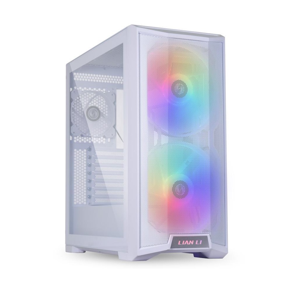- LIAN LI LANCOOL 215 X حافظة كمبيوتر ATX Mid Tower من الزجاج الأبيض - 3 مراوح