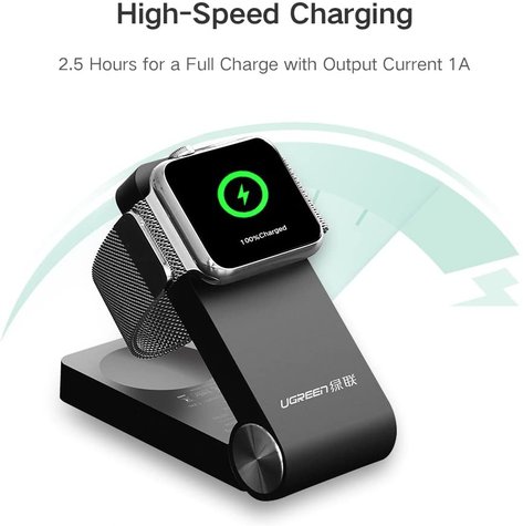 UGREEN شاحن لاسلكي قابل للطي لساعة Apple ، حامل قاعدة شحن معتمد من MFi يدعم وضع المنضدة مع كابل شحن 4FT لـ Apple Watch 3/2/1 الكل 38 مم 42 مم iWatch (4FT / 1.2M)