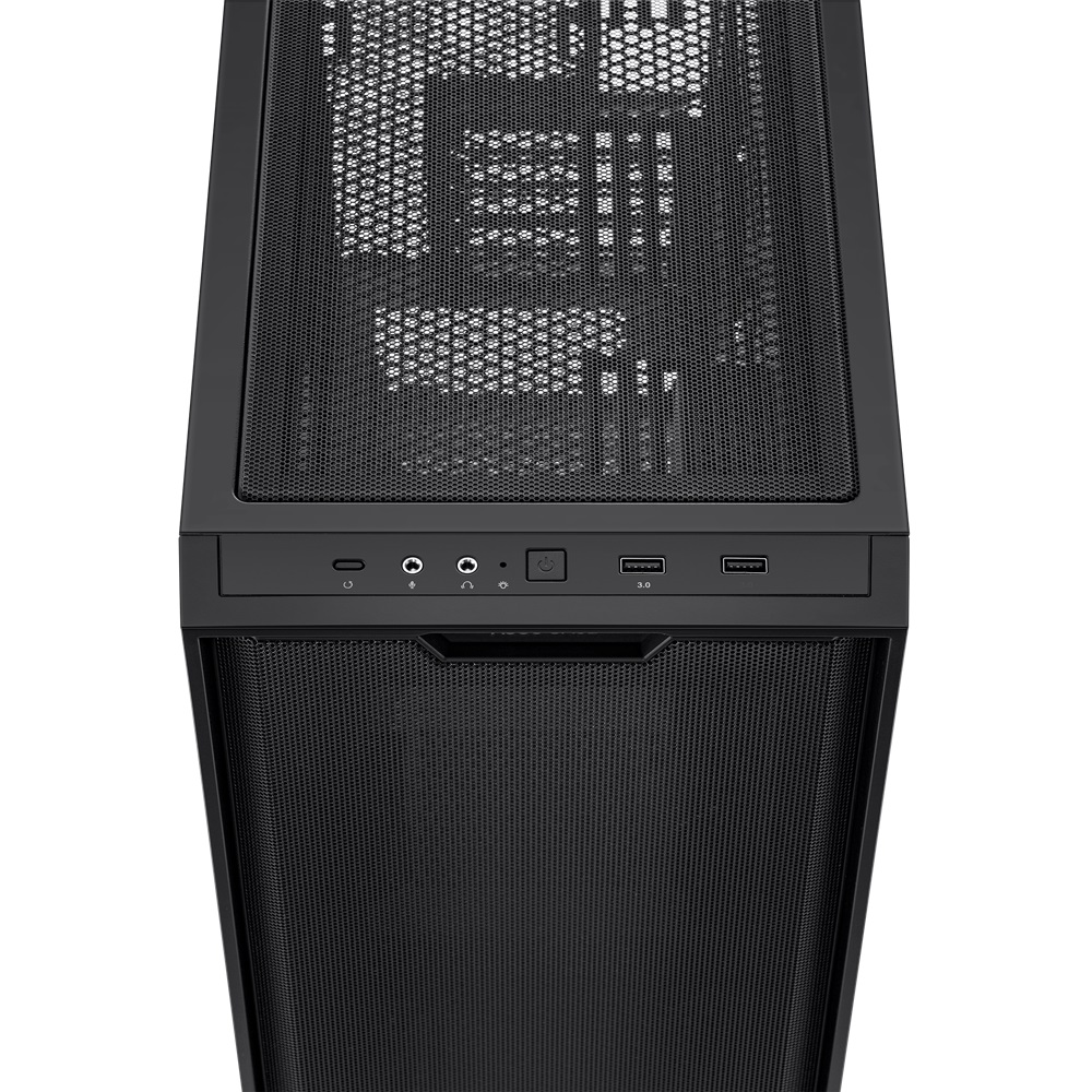 تتميز شبكة اللوحة الأمامية لـ A21 بأنها مسامية بنسبة 40% لتحقيق أقصى قدر من توازن تدفق الهواء ورؤية RGB. يمكن للمستخدمين إضافة ما يصل إلى ثلاث مراوح مقاس 120 مم إلى هذا القسم من تصميمهم لإدارة درجات حرارة النظام بشكل قوي.