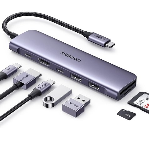 - UGREEN CM195 USB-C 7in1 Hub متعدد الوظائف محول 100W 4K HDMI قارئ بطاقات
