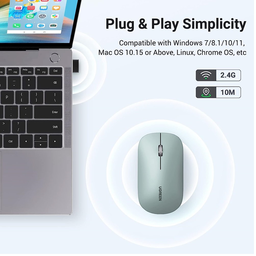 - يوجرين MU001 ماوس لاسلكي 2.4 جيجا صامت – أخضر
