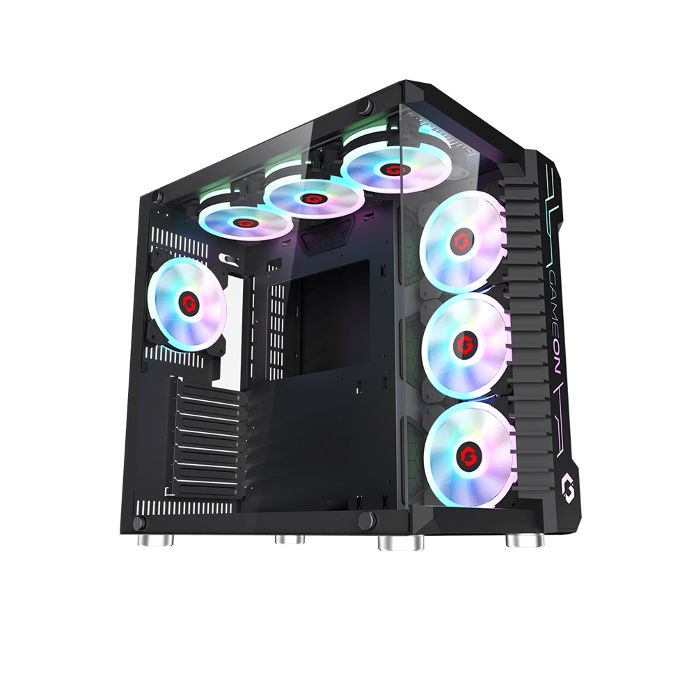 - حقيبة الألعاب GameOn Emperor Arctic III Series Mid Tower – أسود (7 مراوح)