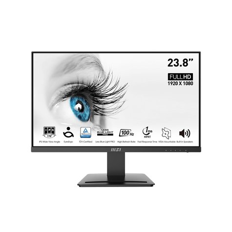 - شاشة MSI PRO MP243X مقاس 24 بوصة بمعدل تحديث 100 هرتز ووقت استجابة 1 مللي ثانية FHD IPS ومكبر صوت EyeCare ومنفذ DisplayPort وHDMI