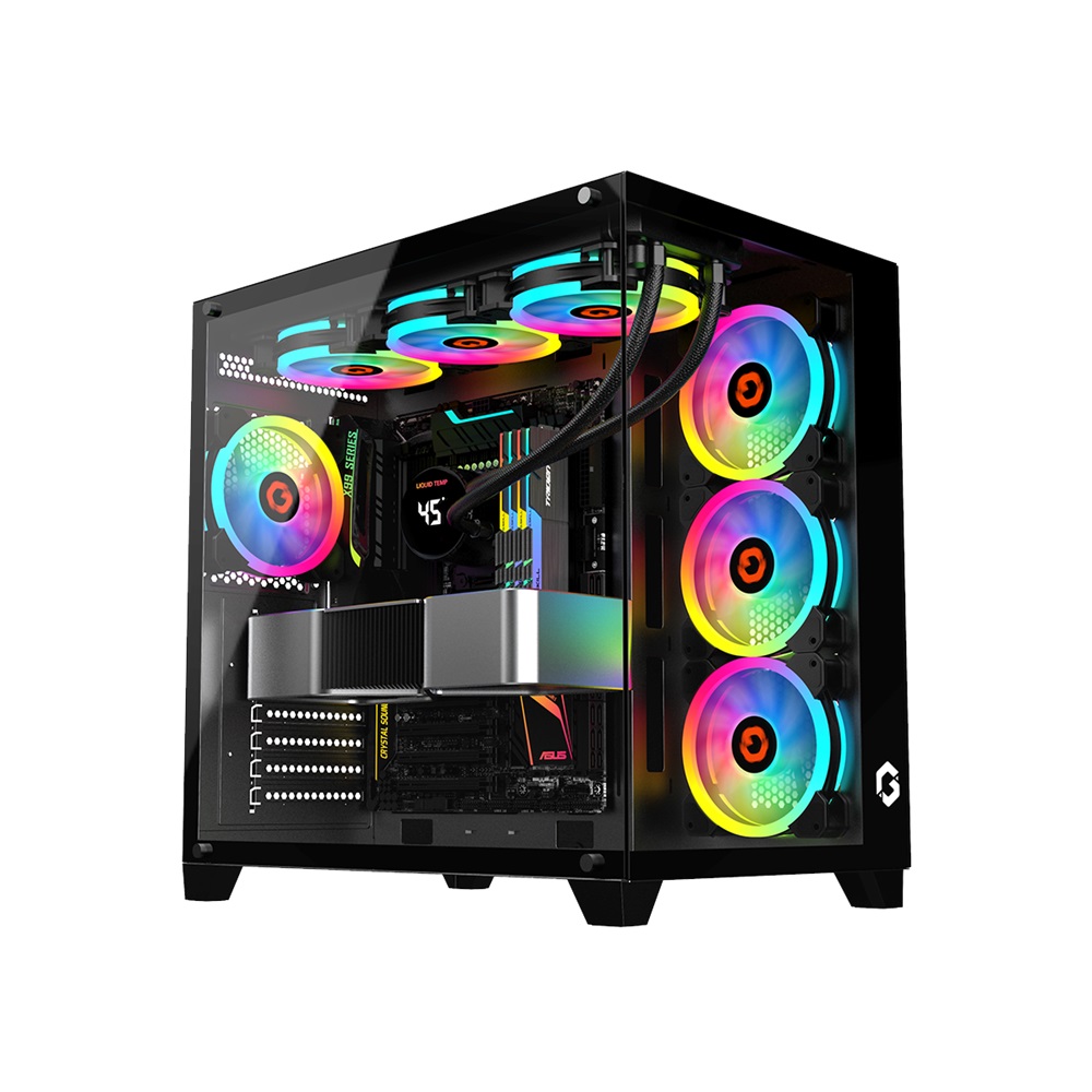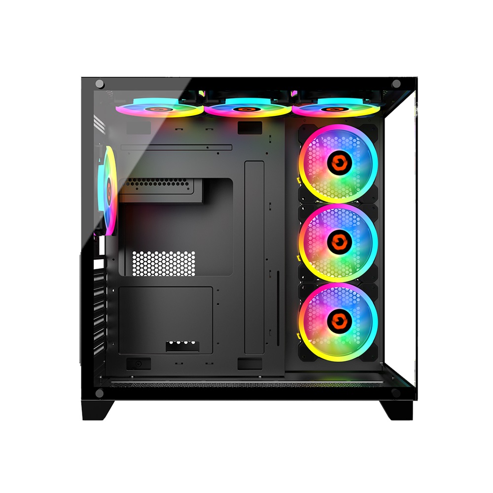 - حافظة كمبيوتر للألعاب من سلسلة Emperor Midnight من GameOn Mid Tower – أسود (7 مراوح)