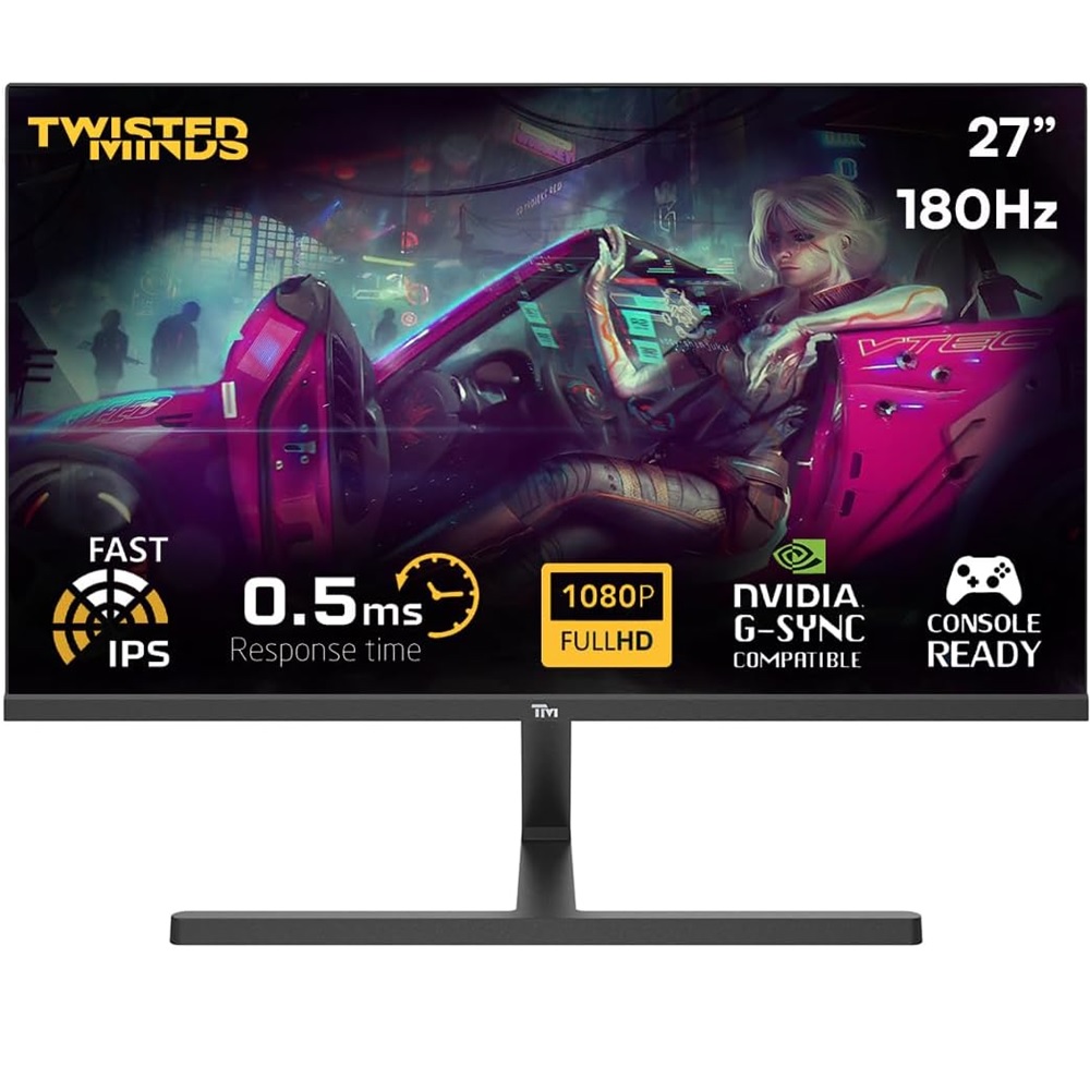شاشة ألعاب Twisted Minds مقاس 27 بوصة FHD180IPS بمعدل تحديث 180 هرتز ووقت استجابة 0.5 مللي ثانية وتقنية IPS FHD HDMI 2.1
