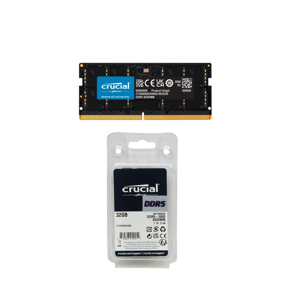 - ذاكرة وصول عشوائي DDR5 بسعة 32 جيجابايت وتردد 5600 ميجاهرتز لأجهزة الكمبيوتر المحمول من Crucial SODIMM