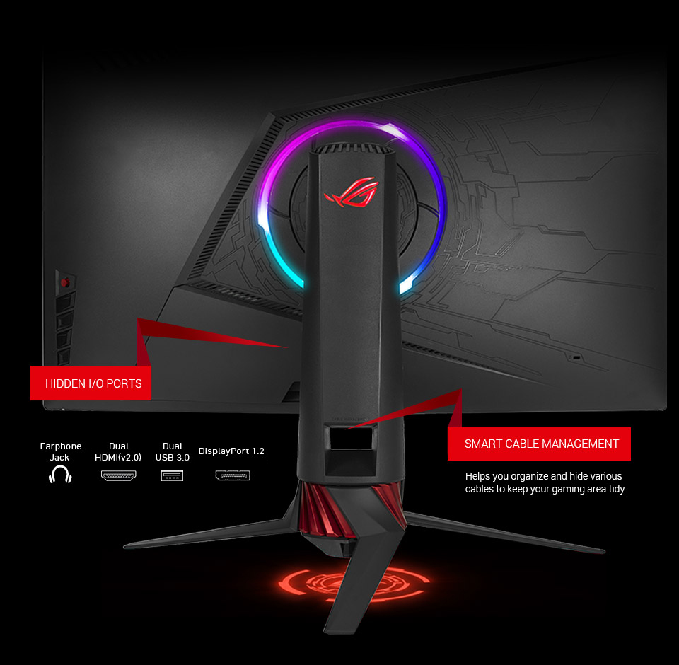 توفر ROG Strix XG32VQR مجموعة كبيرة من خيارات الاتصال ، بما في ذلك منفذ DisplayPort 1.2 ومنفذي HDMI ومنفذي USB 3.0.
