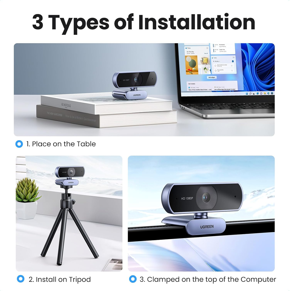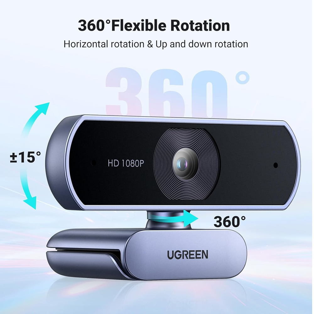 UGREEN – كاميرا ويب 1080P مع ميكروفون، فل اتش دي، إلغاء الضوضاء، التوصيل والتشغيل، تصحيح الإضاءة التلقائي – CM678