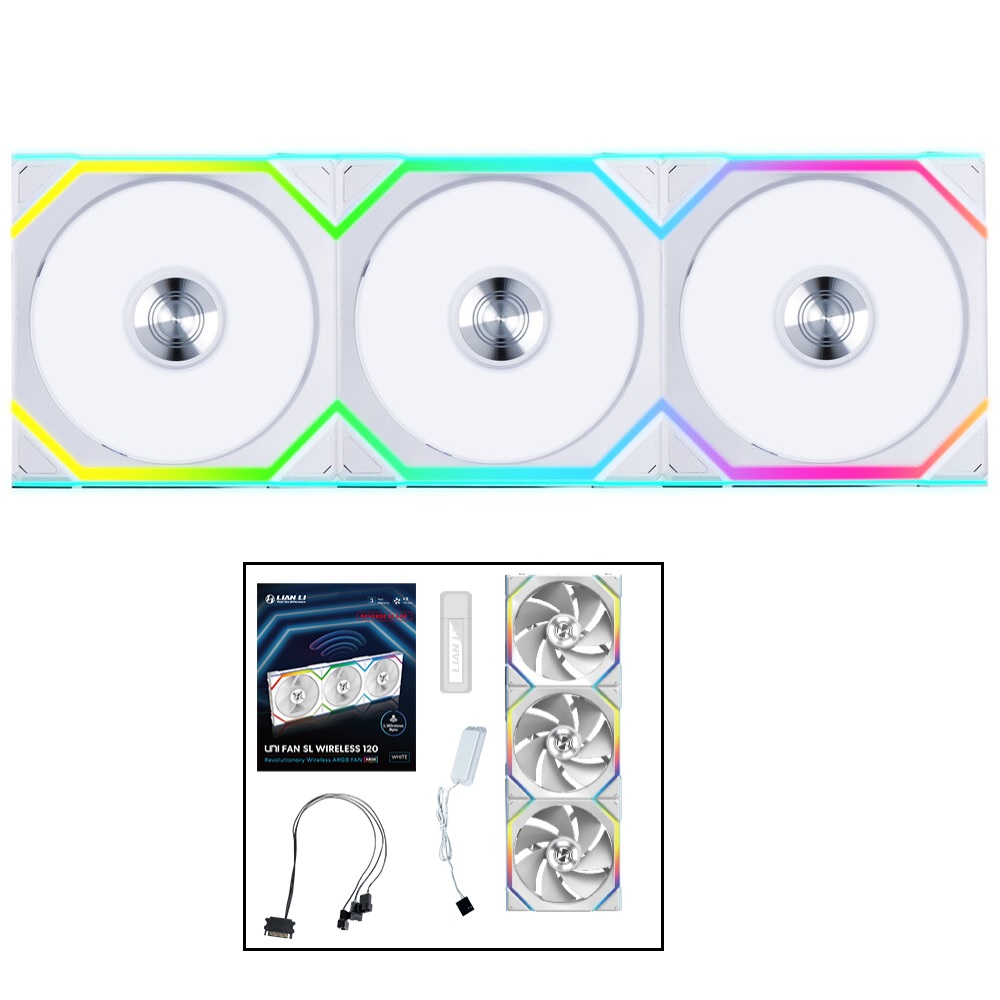 ليان لي مروحة UNI FAN SL Wireless 120 ARGB مقاس 120 ملم بشفرات عكسية – أبيض (عبوة من 3 مراوح)