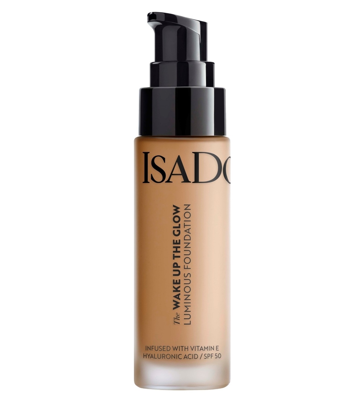 كريم أساس "ويك أب ذا غلو" من إيزادورا، ومزيج هجين من المكياج. تحتوي الأدوية على حمض الهيالورونيك وفيتامين هـ، لذا يُمكن استخدامها أثناء تناول الطعام. عامل الحماية من الشمس ٥٠ مرتفع جدًا عند البدء، ومع مُركب "إنستا-برايت"، يمنحها بشرةً مُشرقةً ونهايةً مُشرقةً. حجمه متوسط، ويزداد تدريجيًا. احصلي على بشرة مثالية بلونٍ خافي عيوب ناعم، طبيعي، أو فاتح. عند البدء باستخدامه، فعّلي مُخفي العيوب "غلو" حتى يُمكن ملؤه بالماء. فعّلي كريم أساس "غلو" والعطر، واختبريه على بشرتكِ، وهو نباتي.