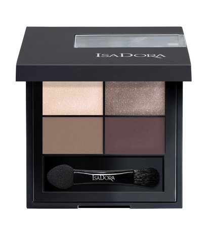 مجموعة ظلال العيون الرباعية من IsaDora المتجددة هي عبارة عن لوحة ظلال عيون صغيرة الحجم تحتوي على أربعة ألوان متكاملة. تمت إضافة مرآة إلى الحزمة. متوفر في ظلال غير لامعة ولامعة يسهل وضعها على طبقات ومزجها بسلاسة. تحتوي كل لوحة على أربعة ظلال متكاملة يمكن استخدامها لإنشاء مجموعة متنوعة من المظاهر، بالإضافة إلى فرشاة صغيرة.
