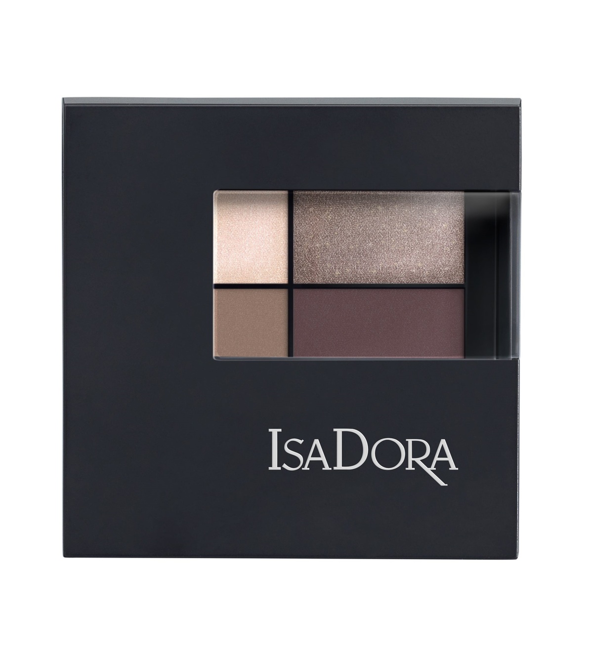 مجموعة ظلال العيون الرباعية من IsaDora المتجددة هي عبارة عن لوحة ظلال عيون صغيرة الحجم تحتوي على أربعة ألوان متكاملة. تمت إضافة مرآة إلى الحزمة. متوفر في ظلال غير لامعة ولامعة يسهل وضعها على طبقات ومزجها بسلاسة. تحتوي كل لوحة على أربعة ظلال متكاملة يمكن استخدامها لإنشاء مجموعة متنوعة من المظاهر، بالإضافة إلى فرشاة صغيرة.