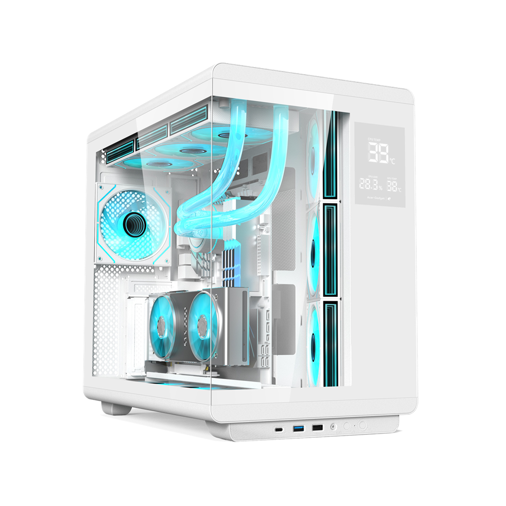 - أيسر U600W هيكل حاسوب مكتبي متوسط الحجم للألعاب – أبيض (7 مراوح)