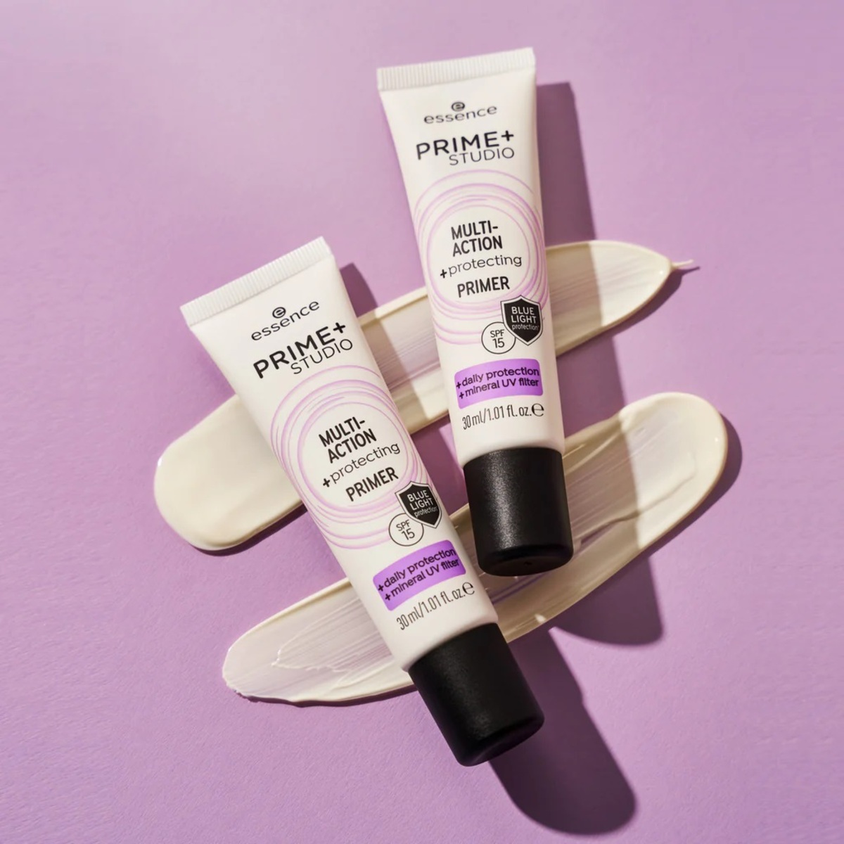برايمر إيسنس ستوديو متعدد الاستخدامات لحماية البشرة، أبيض، 30 مل. قوام البرايمر الرقيق يُسهّل امتصاصه وتنعيمه وتنقيته، بالإضافة إلى حمايته من الأشعة فوق البنفسجية والضوء الأزرق. لا يترك فلتر الأشعة فوق البنفسجية المعدني طبقة دهنية أو بيضاء على البشرة. يمكنكِ اختيار استخدامه كحماية نهارية أو كأساس مثالي لمكياجكِ اليومي.
