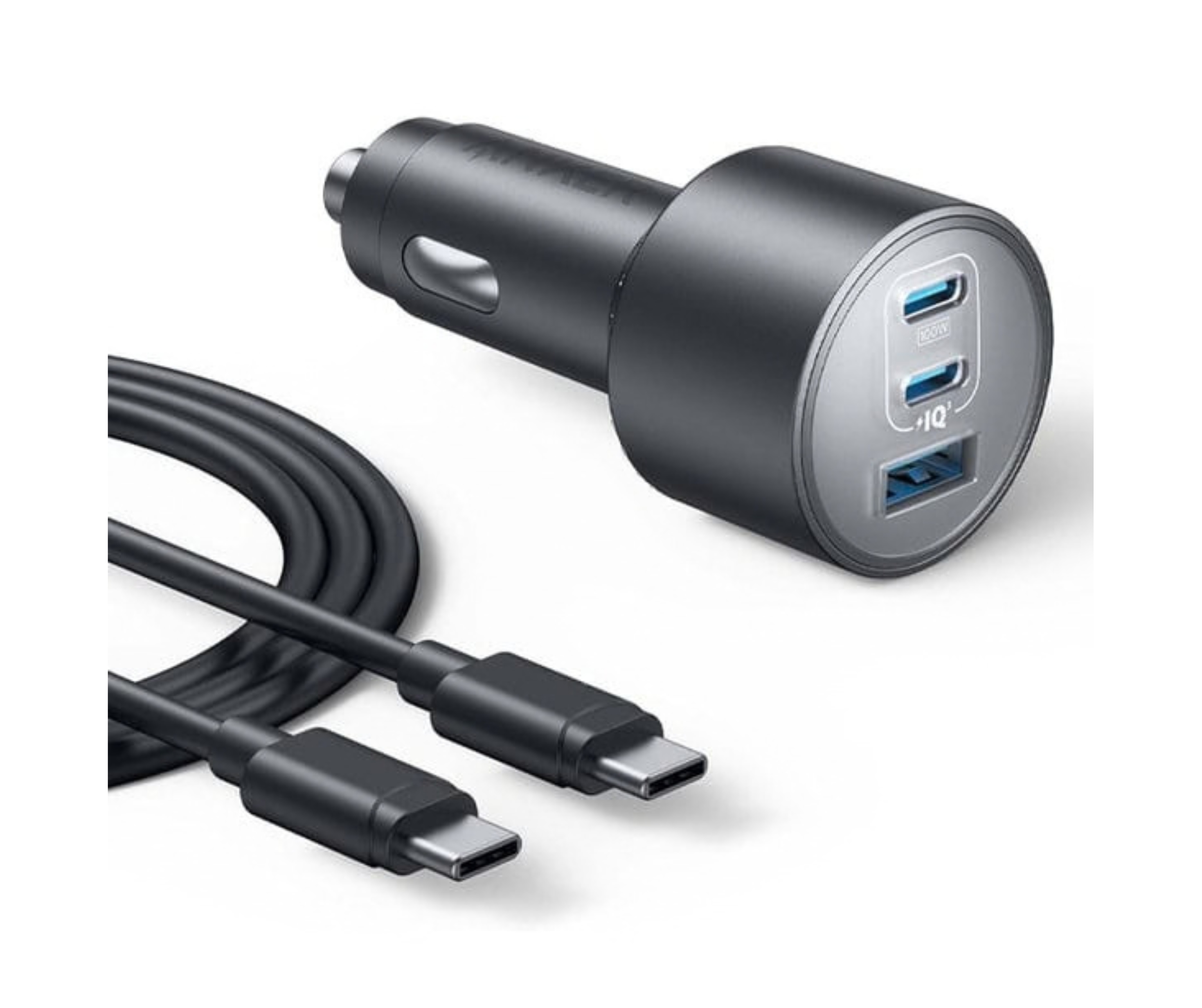 ثلاثة منافذ بقدرة قصوى 167.5 واط: يمكنك شحن جميع أجهزتك بسهولة، حيث يوفر منفذ USB-C الأول قدرة 100 واط، ومنفذ USB-C الثاني قدرة 45 واط، بينما يوفر منفذ USB-A قدرة إضافية 22.5 واط. منفذ USB-C1 فائق السرعة 100 واط: يتيح شحن MacBook Pro مقاس 16 بوصة من 0٪ إلى 50٪ خلال 47 دقيقة فقط. منفذ USB-C2 موثوق بقدرة 45 واط: يوفر شحنًا سريعًا وموثوقًا لهواتف iPhone وأجهزة Samsung لتبقى متصلاً دون تأخير. صغير الحجم وقوي الأداء: تصميم فائق الصغر لا يشغل مساحة كبيرة داخل السيارة ويحافظ على مظهرها مرتبًا.
