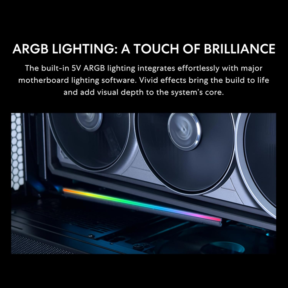 The built-in 5V ARGB lighting integrates effortlessly with major motherboard lighting software. Vivid effects bring the build to life and add visual depth to the system’s core.