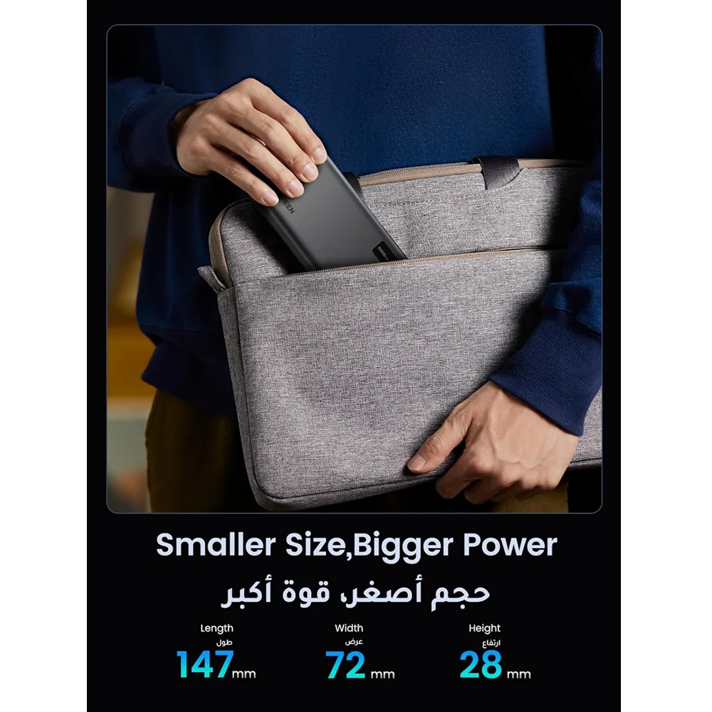 الوصف العام: يقدم بنك الطاقة UGREEN 20000mAh (PB312) المزود بتقنية الشحن السريع ثنائي الاتجاه حلاً قوياً وموثوقاً لشحن جميع أجهزتك المحمولة. بفضل سعته الكبيرة وتقنيات الشحن المتقدمة، يضمن لك البقاء على اتصال دائم سواء في المنزل أو العمل أو أثناء التنقل. تم تصميمه ليكون عالي الكفاءة والأمان، حيث يتضمن ميزات حماية متعددة ويدعم شحن جهازين في وقت واحد.