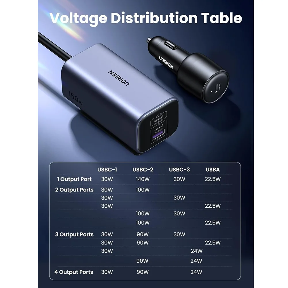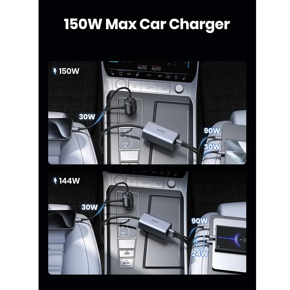 - محول شاحن سيارة سريع من يو جرين (UGreen EC706) بتقنية GaN، مزود بـ 4 منافذ وبقوة 150 واط