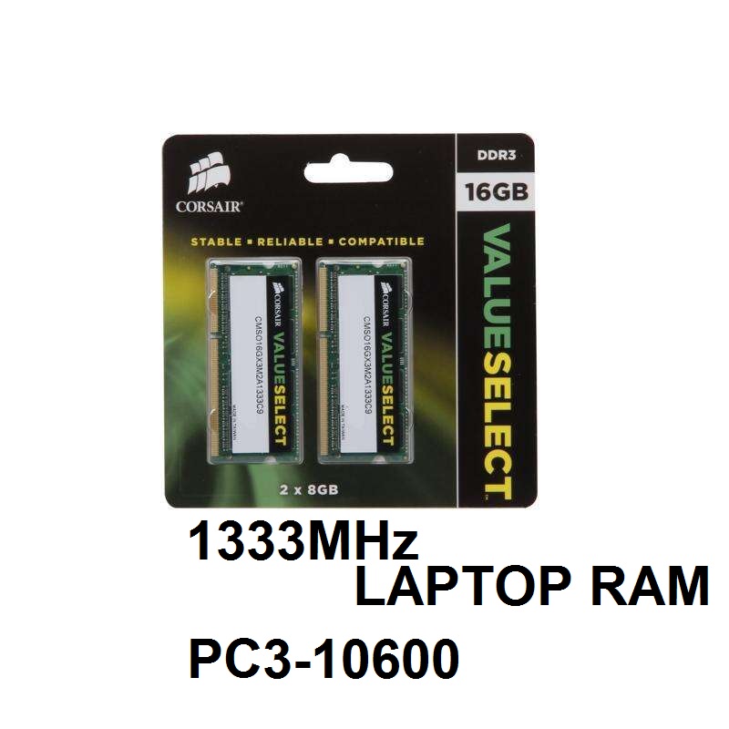 - كورسير 16 جيجا رام DDR3 1333 ميجا هرتز لابتوب