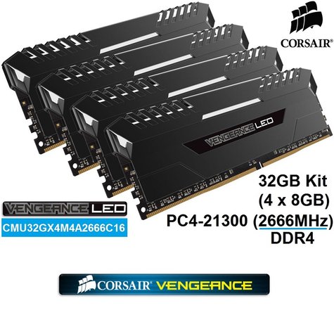 - مجموعة ذاكرة الانتقام من Corsair بسعة 32 جيجا بايت 2666 ميجا هرتز DDR4 RAM ، 4x8 جيجا بايت