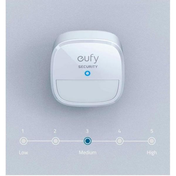 Connect the Eufy Wireless Motion Sensor with HomeBase and the app. Eufy Security Home Alarm System Motion sensor, 100 degree coverage, 30 feet range, up to 2 years battery life, adjustable sensitivity (home base required).