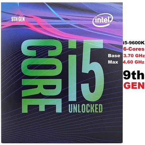 Intel i5-9600K Processor, 6 Cores, 6 Threads, 9MB Cache, Base 3.70GHz, Max 4.6GHz, LGA1151, 9th Generation, 9600K
