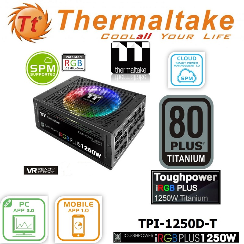 The Thermaltake Toughpower iRGB PLUS 1250W Titanium is the world’s first PSU pre-installed with a patented 16.8 million colors RGB fan that incorporate various high-tech components, leading technology and eco-friendly commendations. Featuring 80 PLUS Titanium certification with individually sleeved cable and flat cable, Toughpower iRGB PLUS Titanium Series adopts the highest quality components and fully modular design that always accommodate any mainstream build under any circumstance.