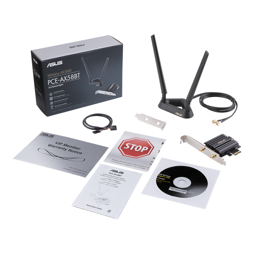 - ASUS AX3000 WiFi6 Bluetooth 5.0 PCIe Wireless Adapter Card, PCE-AX58BT