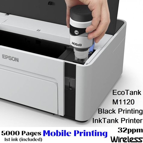 - Epson M1120 WiFi EcoTank Mono Ink Tank System Wireless Printer, 32ppm Black