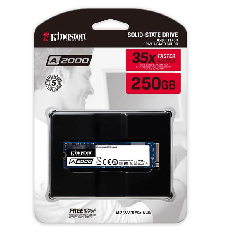 - Kingston 250GB A2000 M.2 2280 NVMe SSD PCIe Gen 3.0, 2000Mbps Read