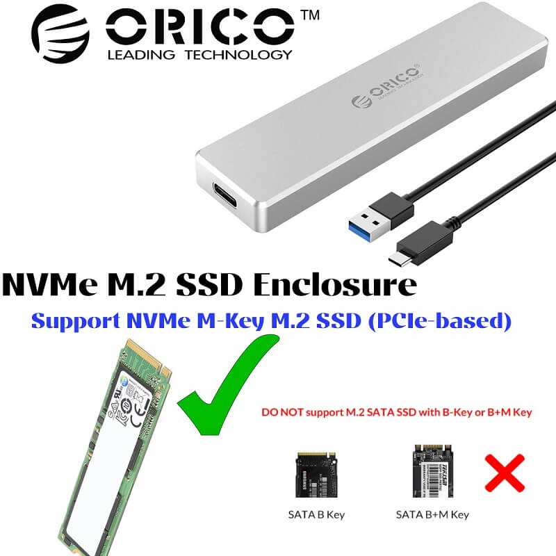 Orico NVMe M.2 SSD Enclosure Aluminum Alloy PCM2 USBC TypeC External Case