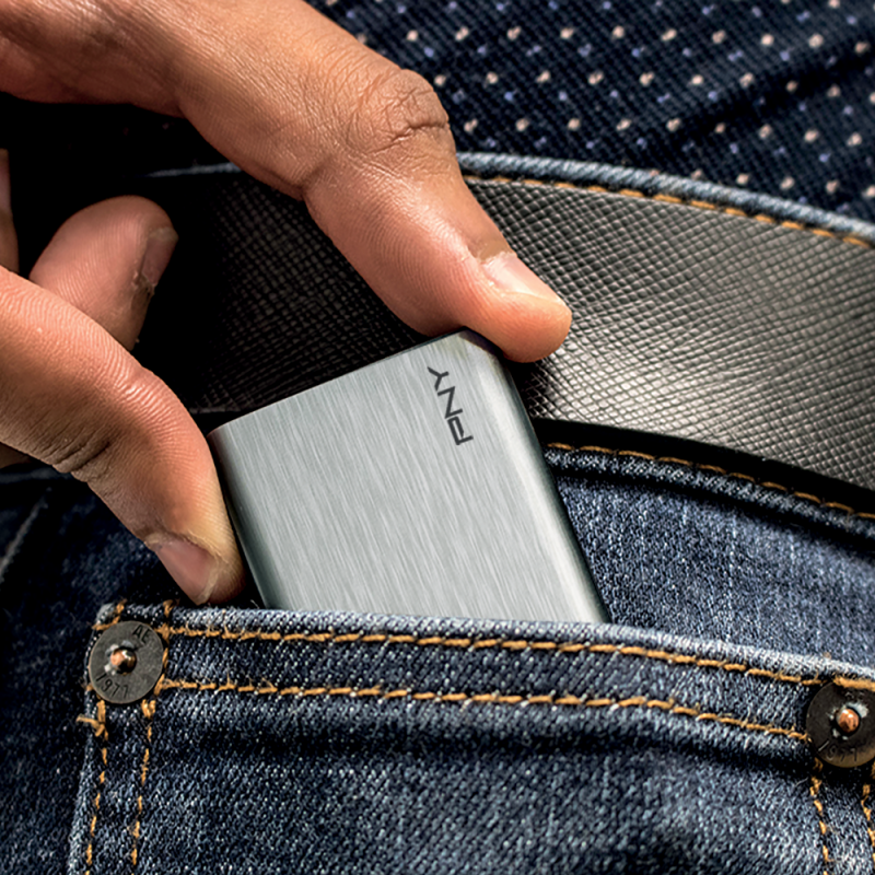 PNY’s Elite USB 3.1 Gen 1 Portable SSD offers a storage capacity of up to 960GB in a pocket-sized design. This powerful USB 3.1 Gen 1 powered drive offers blazing-fast transfer speeds of up to 430 MB/s*. It’s the ideal solution for photographers, videographers, graphic designers or any mainstream computer user who needs to back-up or transfer large files. Take all of your data with you whenever you need it and have the ability to offload it quickly.