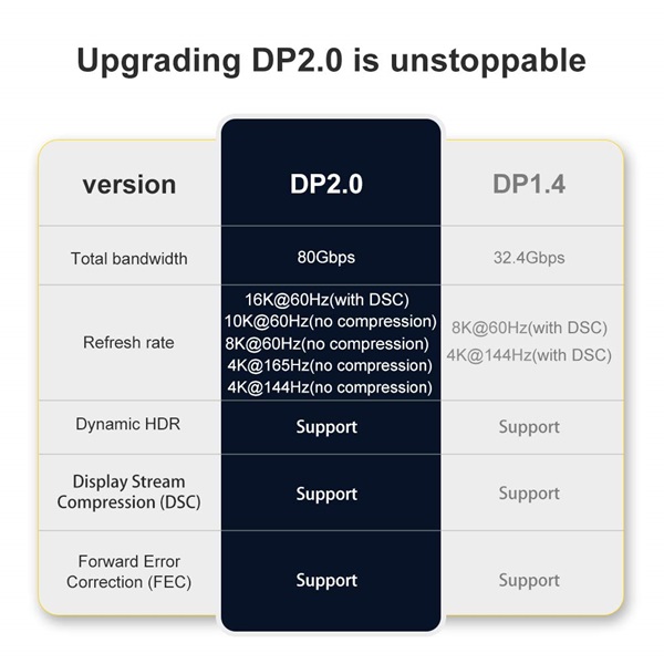 DisplayPort 2.0 (3-Meter) 16K@60Hz 8K@60Hz 4K@165Hz 4K@144Hz 80Gbps HDR
