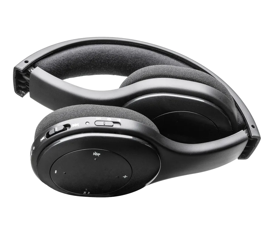 Padded headband and sculpted foam ear cups provide hours of comfort. Headset folds up easily for portability.