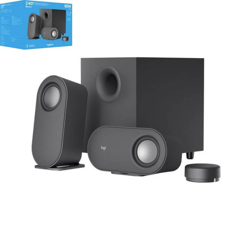 - Logitech Z407 Bluetooth Computer Speakers Subwoofer Wireless control 80 watts sound, 3.5mm / Micro USB