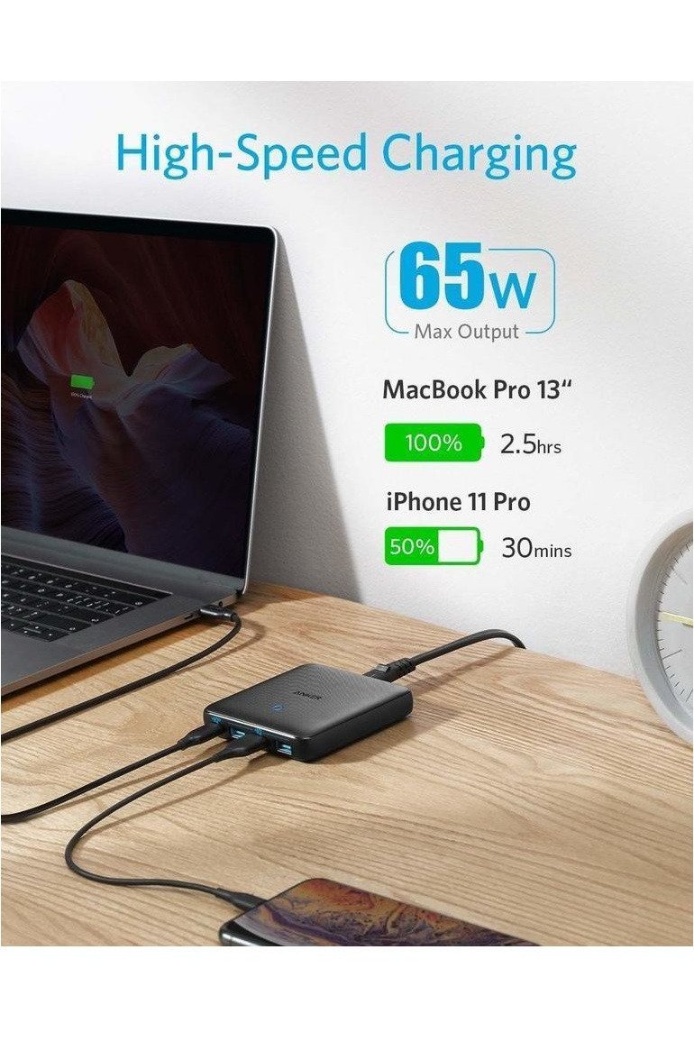 • Anker PowerPort Atom III 65W Desktop Charger 4 Ports – Gray Fabric