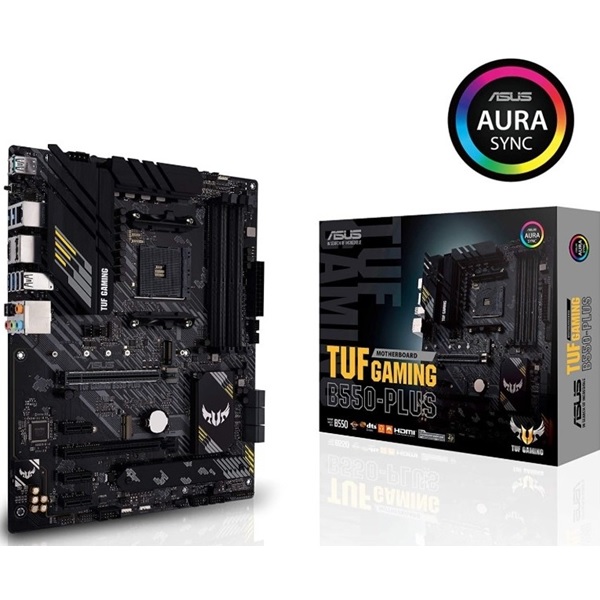 TUF Gaming B550-Plus provides a complete, high-performance gaming package with a long list of features to improve your experience, including ultrafast networking for smoother online gameplay, pristine audio with positional cues for FPS gaming, and onboard RGB lighting that syncs with attached accessories to help you create a personalized gaming atmosphere.