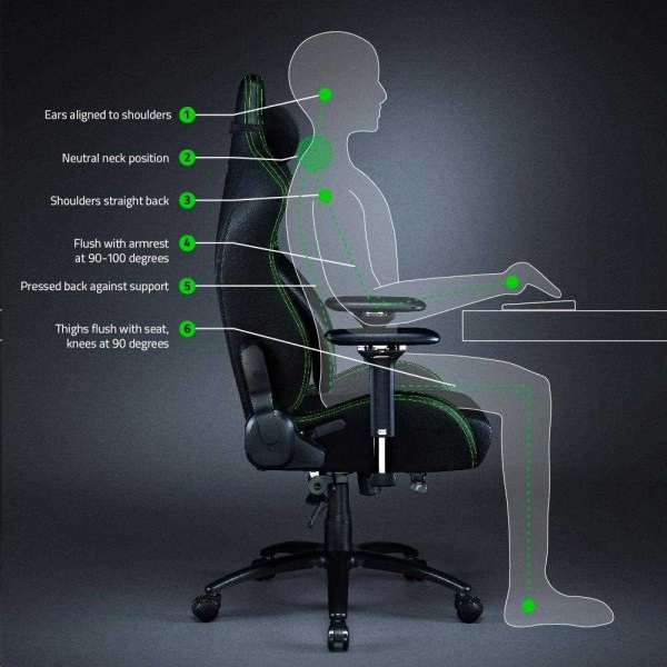 - Razer Iskur – Black / Green Gaming Chair with Built-in Lumbar Support